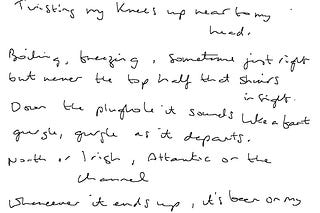 Why is the bath so much shorter than my bed? Twisting my knees up near my head. Boiling, freezing, sometimes just right, but never the top half that…